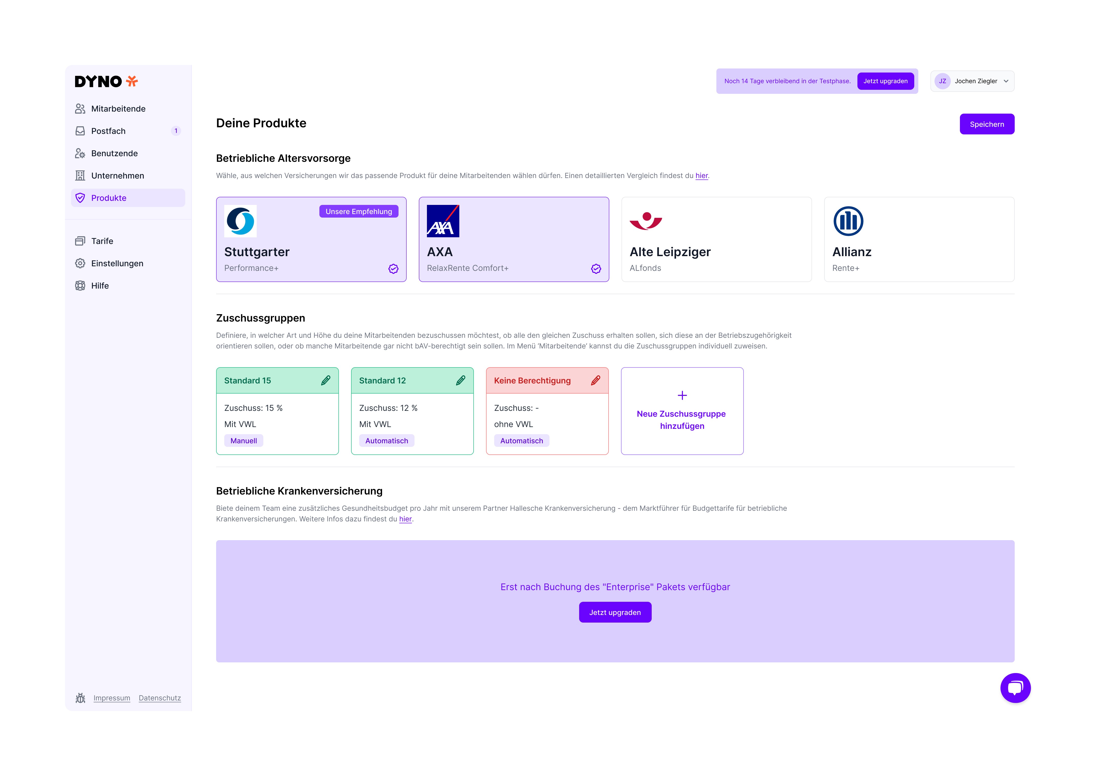 Was mir besonders gut gefällt, ist die persönliche Betreuung. Man bekommt immer super schnell eine Rückmeldung, wenn man Hilfe benötigt oder eine Frage hat. Außerdem finde ich die Produktidee an sich sehr innovativ. Mit DYNO decken wir unser Angebot für die betriebliche Altersvorsorge ab – ein super Benefit für unsere Mitarbeitenden. Ein klarer Vorteil sind die provisionsfreien Verträge.