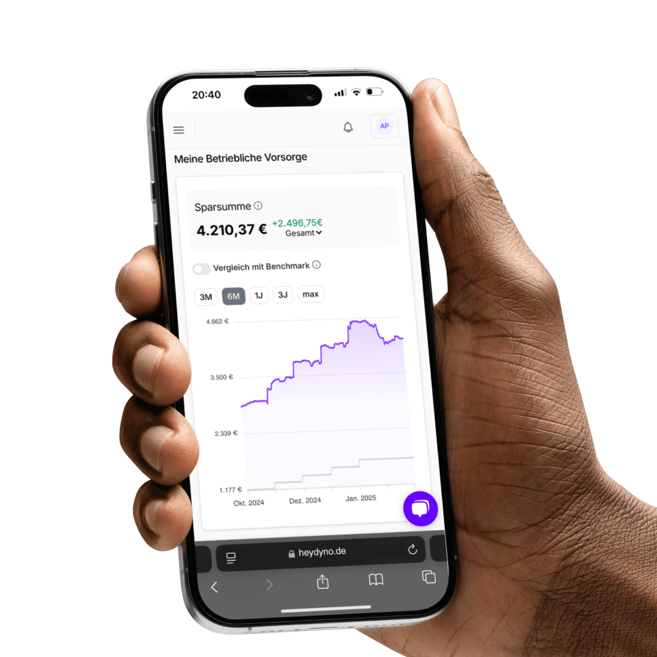 Als Geschäftsführer kannst du bis zu 7.728 € steuerfrei in deine bAV investieren – digital, provisionsfrei und KI-gestützt smart anlegen. Mit DYNO in unter 10 Minuten